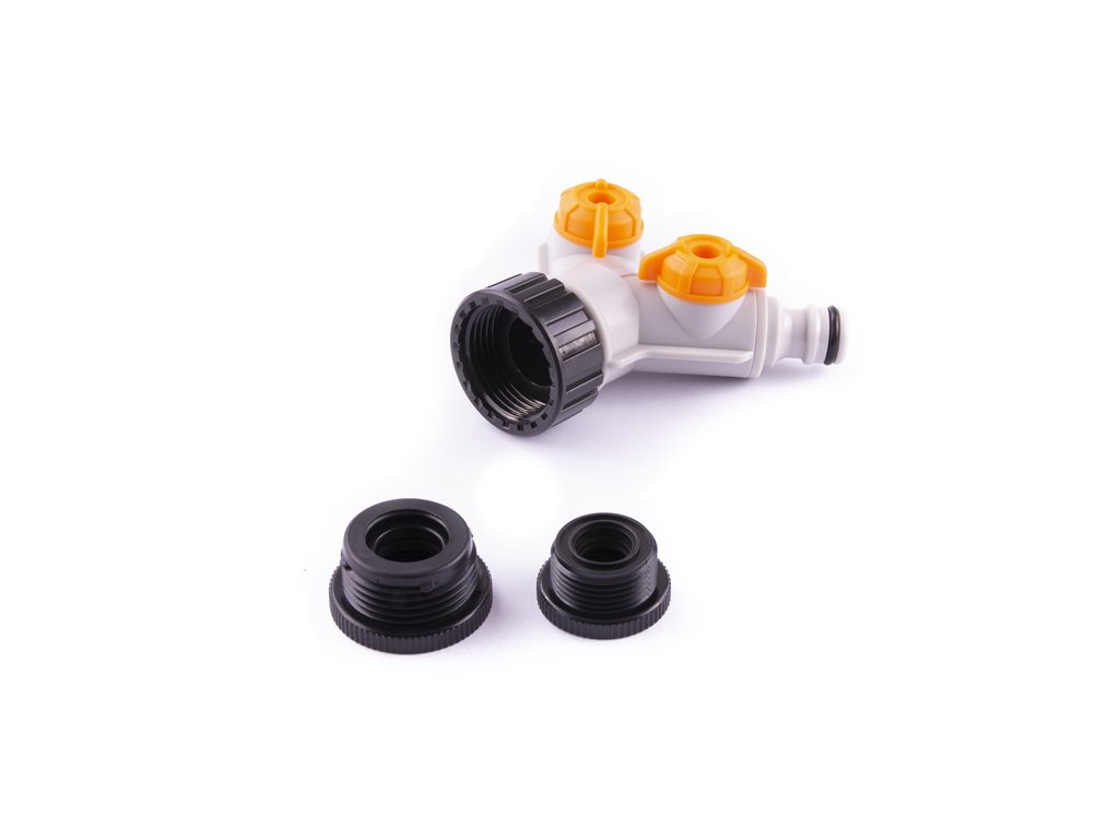 › ZAHRADNÍ NÁŘADÍ › Adaptéry, spojky z plastu a těsnění › Adaptér PLAST, 2 vývody, STOP