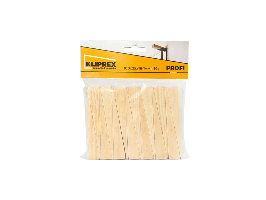 › STAVEBNÍ NÁŘADÍ › Stěrky, klínky, křížky a sety Leveling › Klínky dřevěné SM 14ks/100x25x16-1mm