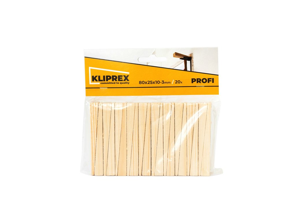 › STAVEBNÍ NÁŘADÍ › Stěrky, klínky, křížky a sety Leveling › Klínky dřevěné SM 20ks/80x25x10-3mm